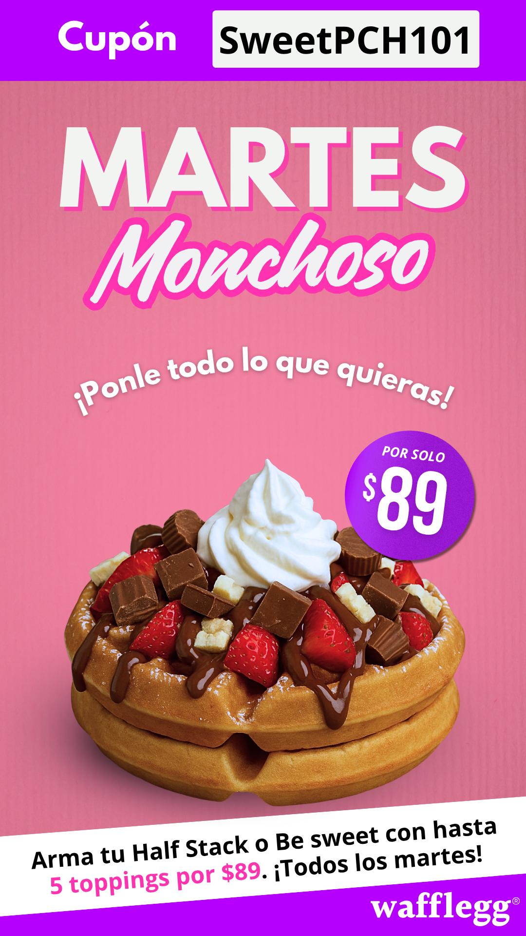 Descárgalo y preséntalo este martes en Wafflegg® Sweet Pachuca para disfrutar del waffle No.1 en México.