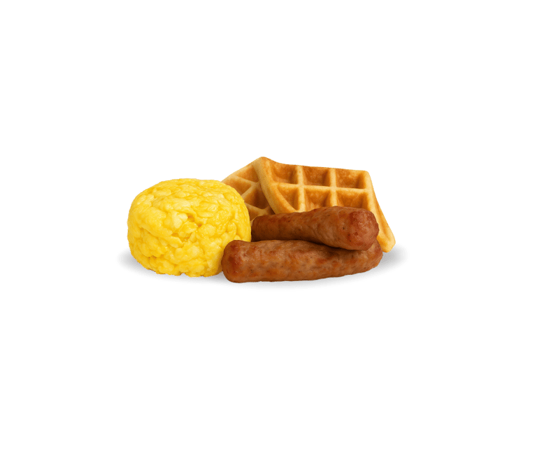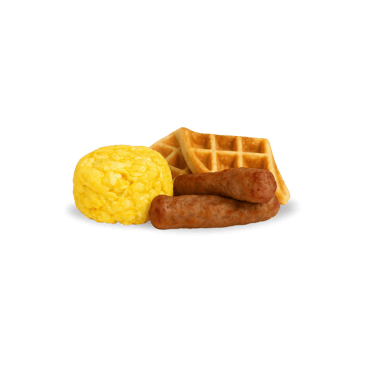 1/2 waffle, huevo revuelto y salchicha Jimmy Dean.