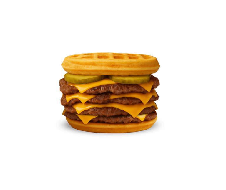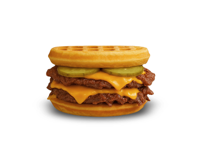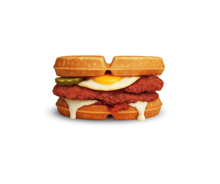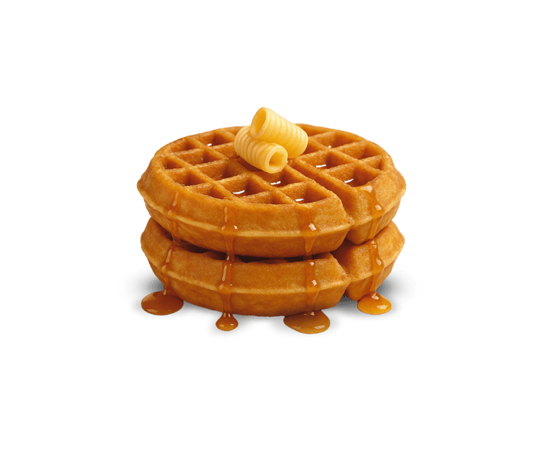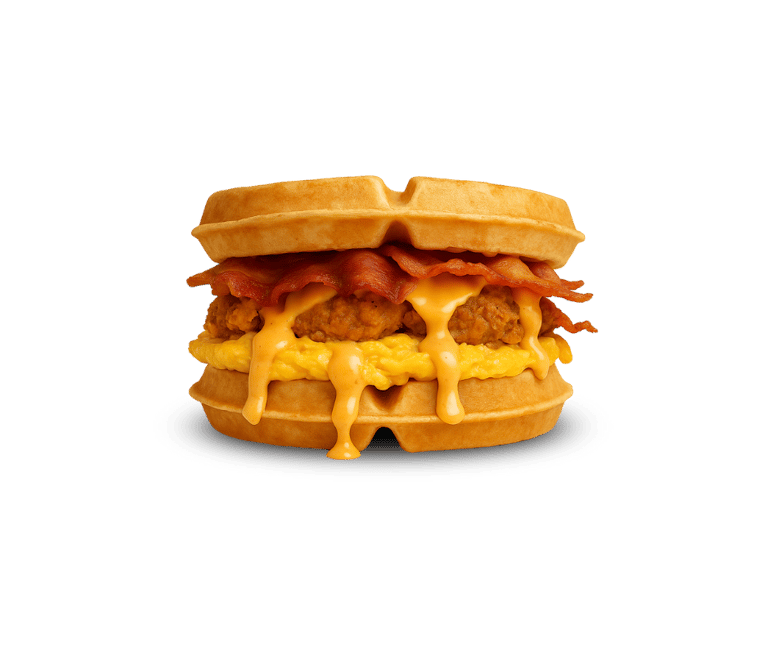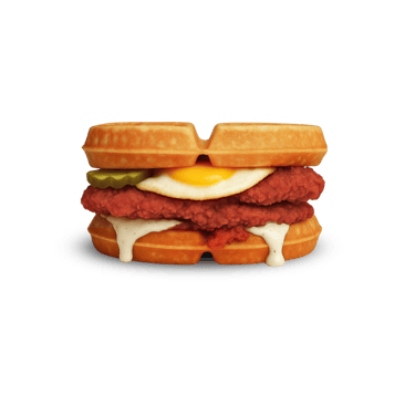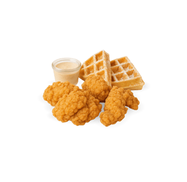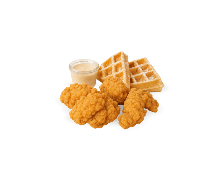 es dorado, especiado y servido con papas waffle y aderezos que lo llevan al siguiente nivel.
