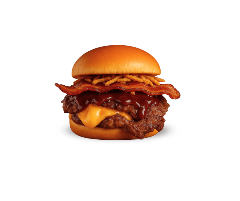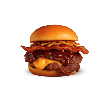 Carne smash, queso cheddar ,tocino, cebolla crispy, bbq y aderezo.