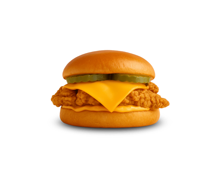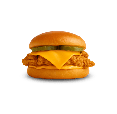 Pollo frito, queso cheddar, pepinillos y aderezo.